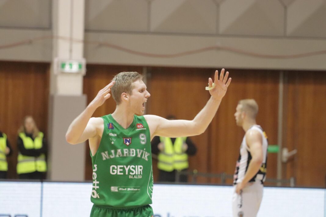 Njarðvík lagði KR rétt í þessu í seinni undanúrslitaleik Geysisbikars karla. Njarðvík er því komið í úrslitaleikinn, sem fram fer komandi laugardag. Þar mun liðið mæta Stjörnunni, sem fyrr í kvöld lagði ÍR.