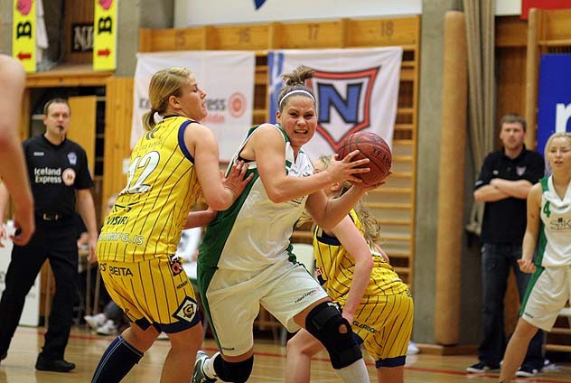 Anna María Ævarsdóttir gerði fjögur síðustu stig Njarðvíkinga á lokasprettinum o galls 8 stig í leiknum en stigahæst hjá Njarðvík var Shayla Fields með 32 stig. Hjá Haukum var Kathleen Snodgrass með 23 stig.