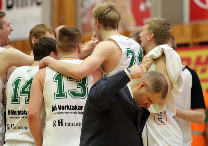 Mynd/ [email protected] – Friðrik Ingi Rúnarsson virðist nokkuð sáttur hér á þessari mynd með sæti Njarðvíkinga í undanúrslitum.