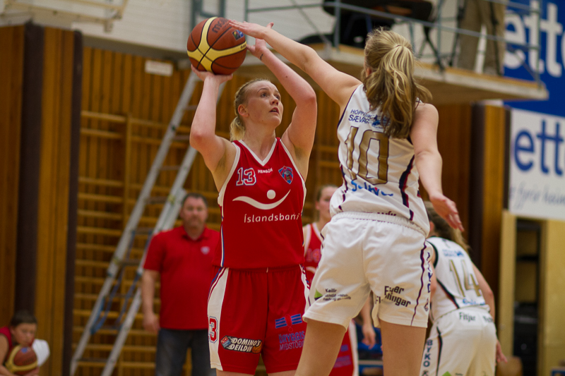 Mestu munar um framlag Guðbjargar Sverrisdóttur fyrir Valsstúlkur, en hún hefur skorað 11 stig, stolið 5 boltum, gefið 3 stoðsendingar og tekið 4 fráköst í þessum fyrri hálfleik. Fyrir heimastúlkur í Keflavík er Sandra Lind Þrastardóttir atkvæðamest, með 7 stig og 5 fráköst.