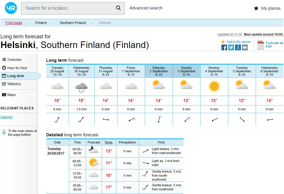 Eitt sem við Íslendingar fáum aldrei nóg af er að spá í veðrinu hvort sem það er hérlendis eða á okkar áfangastöðum. Karfan.is er þar ekki undanskilið og því færum við ykkur landtíma veðurspá. Ef spá Norsku veðurstöðvarinnar YR gengur eftir þá er ekki von á öðru en að óþarfi verður fyrir okkur stuðningsmenn að pakka niður regnfötunum.  Eitthvað verður skýjað fyrstu dagana en svo er von á sólardögum fram í næstu viku.