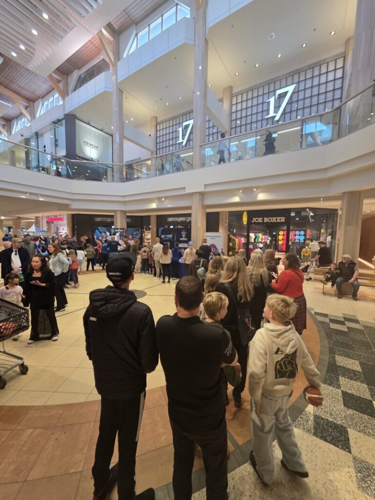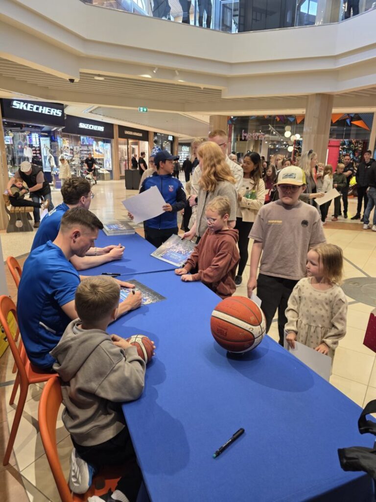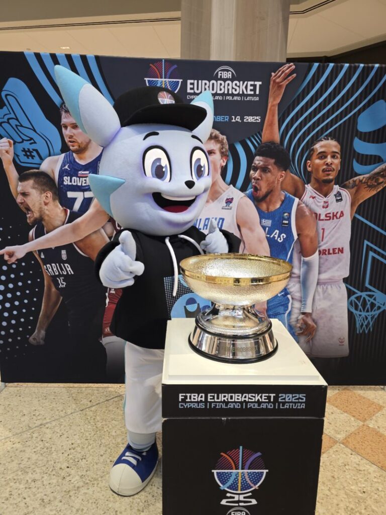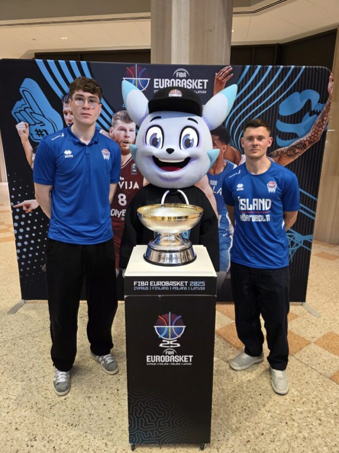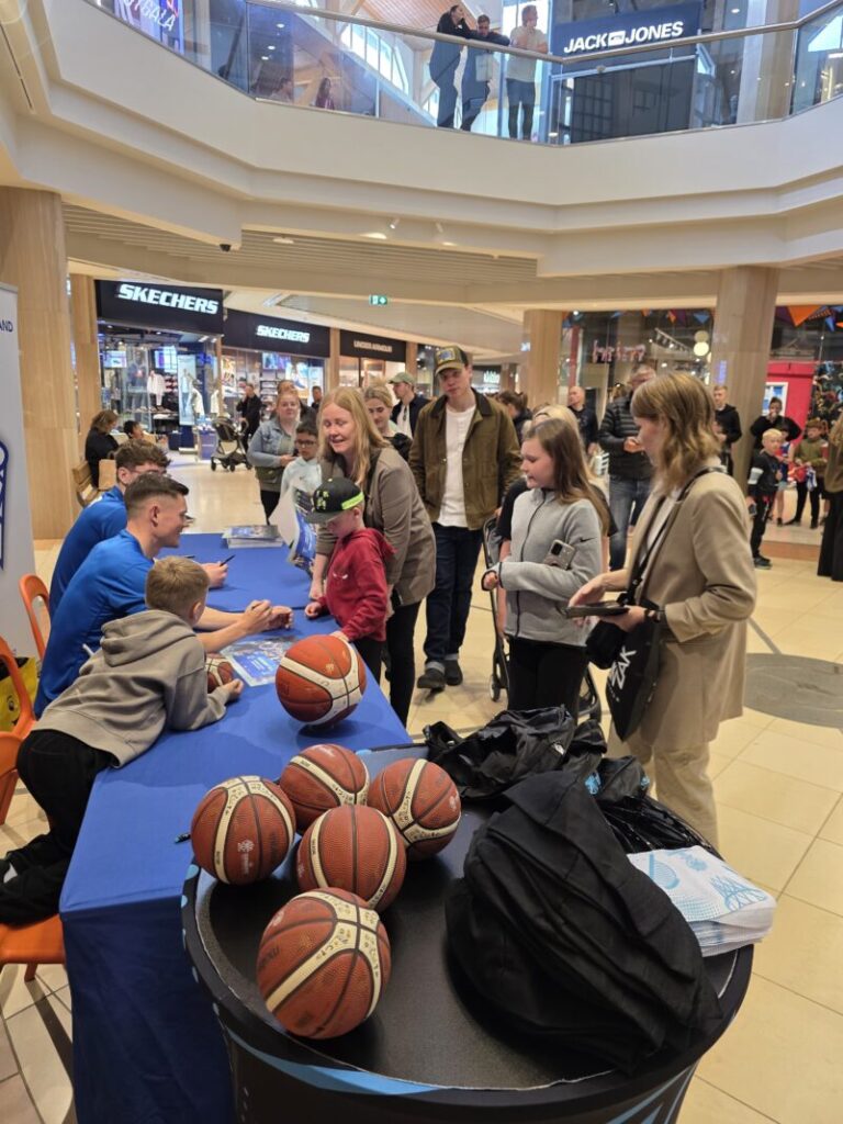 Vel var mætt í Kringluna í dag þegar lukkudýr EuroBasket 2025 mætti með bikarinn til sýninga í Kringluna fyrr í dag.