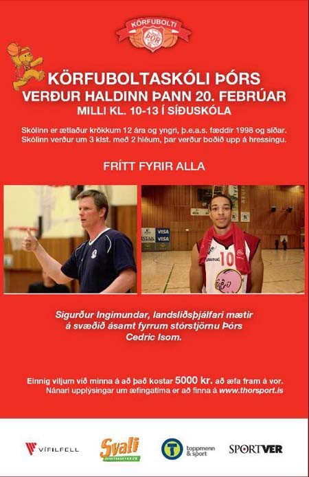 Laugardaginn 20. febrúar bauð unglingaráð körfuknattleiksdeildar Þórs á Akureyri, krökkum 12 ára og yngri upp á körfuboltaskóla þar sem bæði færir þjálfarar og góðir körfuknattleiksmenn leiðbeindu krökkunum.