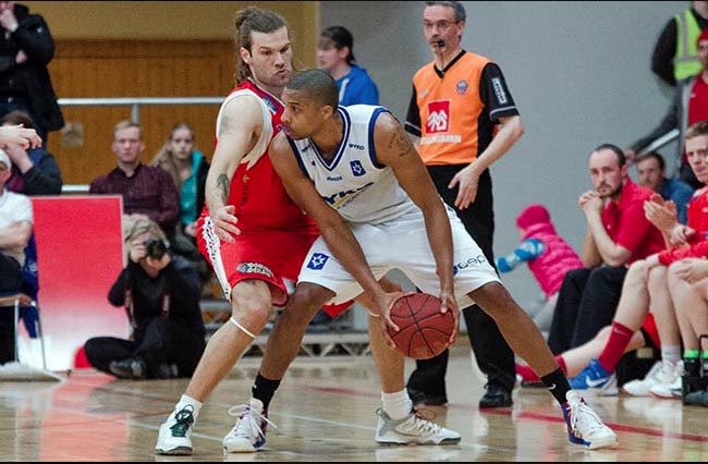 Ryan Amoroso var með kollega sinn Brian Mills í vasanum í kvöld. Amoroso minnkaði muninn í 53-50 fyrir Snæfell en þótti helst til of myndarlegur í tilburðum sínum eftir körfuna og fékk því dæmt á sig tæknivíti fyrir flopp! Sjaldséðir eru hvítir hrafnar.