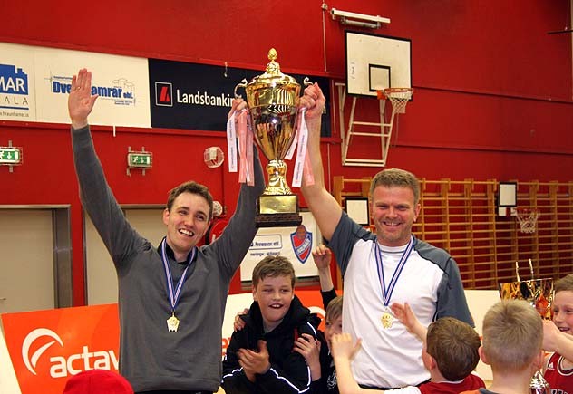 Ljósmynd/ [email protected] Yngvi t.v. ásamt Henning Henningssyni núverandi þjálfara Haukakvenna. Félagarnir með Íslandsmeistaratitilinn að Ásvöllum eftir sigur Hauka gegn KR.